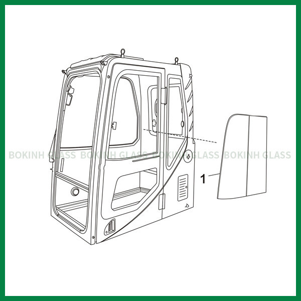 BOKINH โรงงานกระจกรถขุด กระจกบังลมแบบกำหนดเอง ตำแหน่งลาดเอียงซ้าย NO.1
